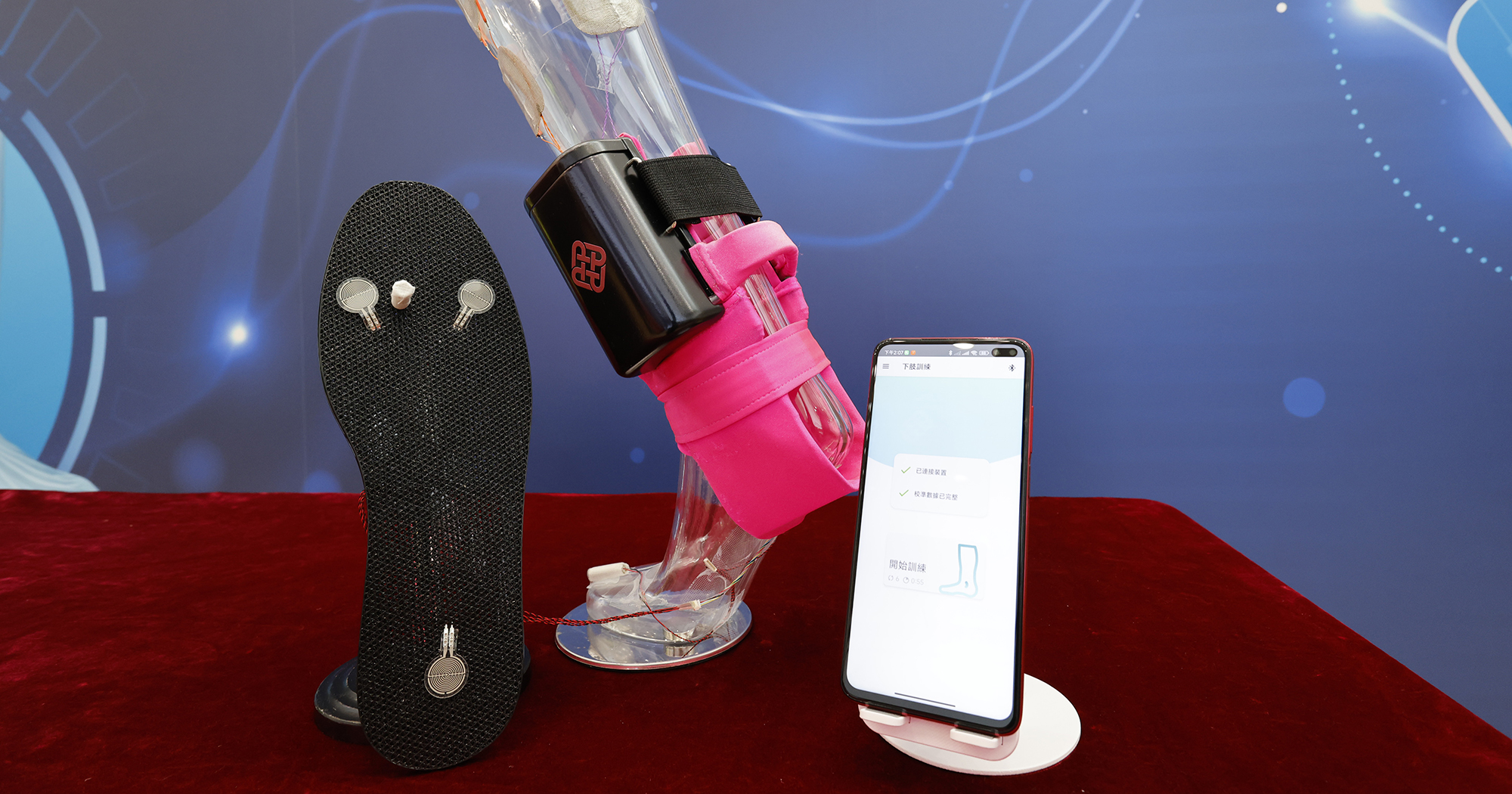 Common functional impairments among stroke patients include foot drop and inversion, which significantly disrupt their daily lives. Developed by a research team led by Dr Hu Xiaoling, Associate Professor of the Department of Biomedical Engineering of PolyU, the Mobile Ankle-foot Exoneuromusculoskeleton is an innovative multimodal wearable robot for ankle-foot rehabilitation that integrates the advantages of exoskeleton, soft pneumatic muscles, tactile sensory feedback and neuromuscular electrical stimulation technology in one system. The device can not only correct foot drop and foot inversion effectively, but also improve the gait of stroke patients. Additionally, it can help improve balance while walking and contribute to rehabilitative neuroplasticity in the long term.