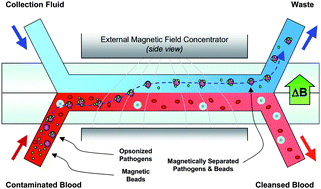 Graphical abstract: Micromagnetic–microfluidic blood cleansing device